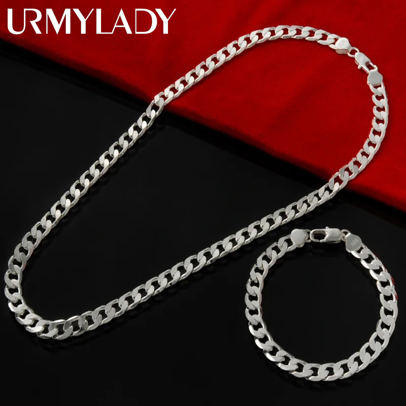 Fine 925 Sterling Silver 6MM Geometry Chain Bracelets Necklaces for Women Man Designer Party Wedding Jewelry Sets Gifts 50cm and 20cm – Sumsfashion