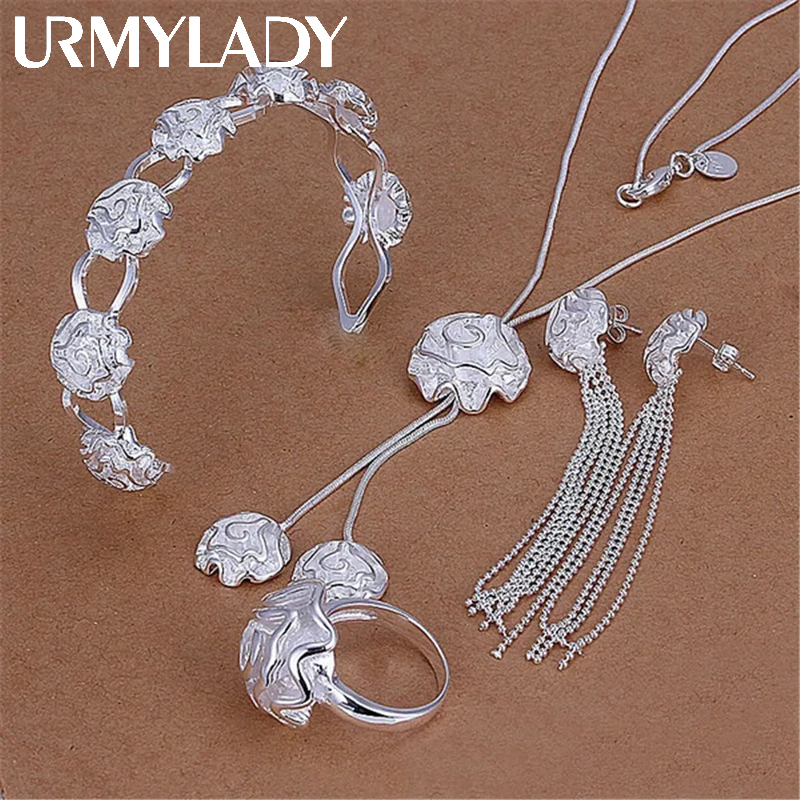 High-quality classic rose flower 925 Sterling Silver Jewelry set rings bangles Bracelets necklaces stud earrings for women gifts 9
